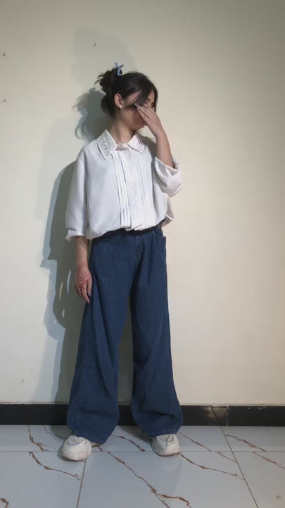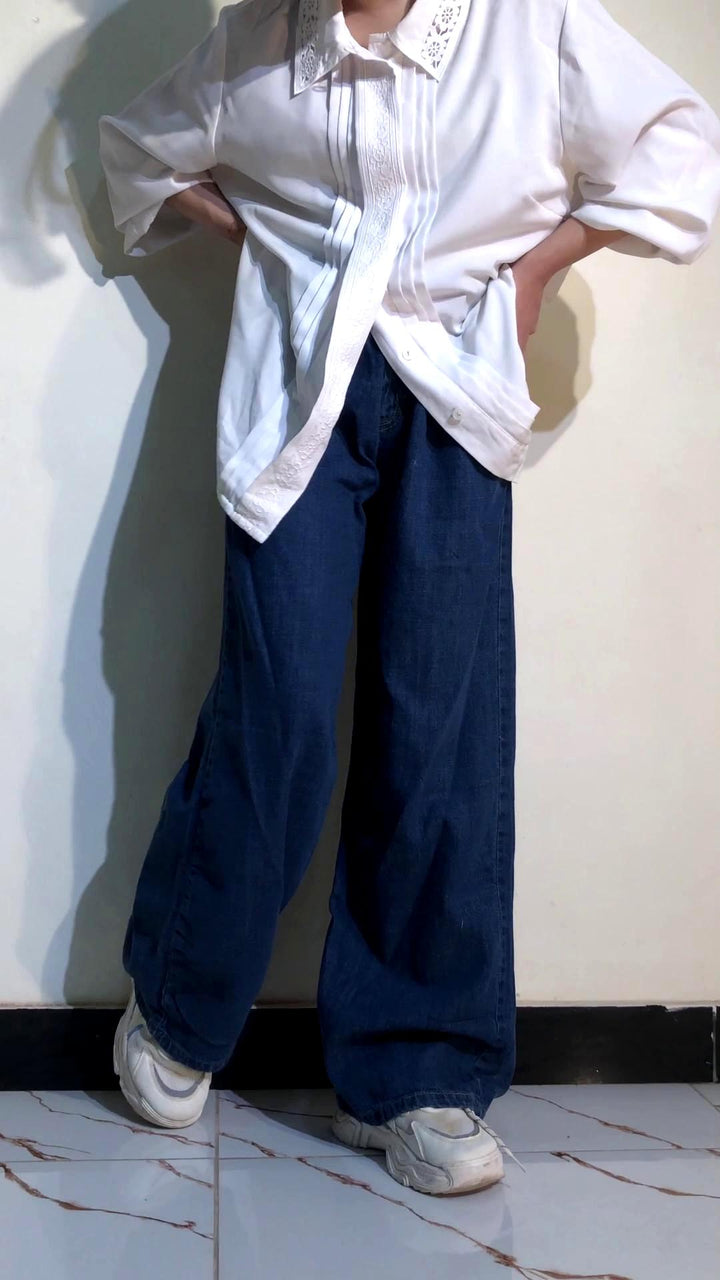 Dark Blue Wide-Leg Jeans | T-SHIRT.PK